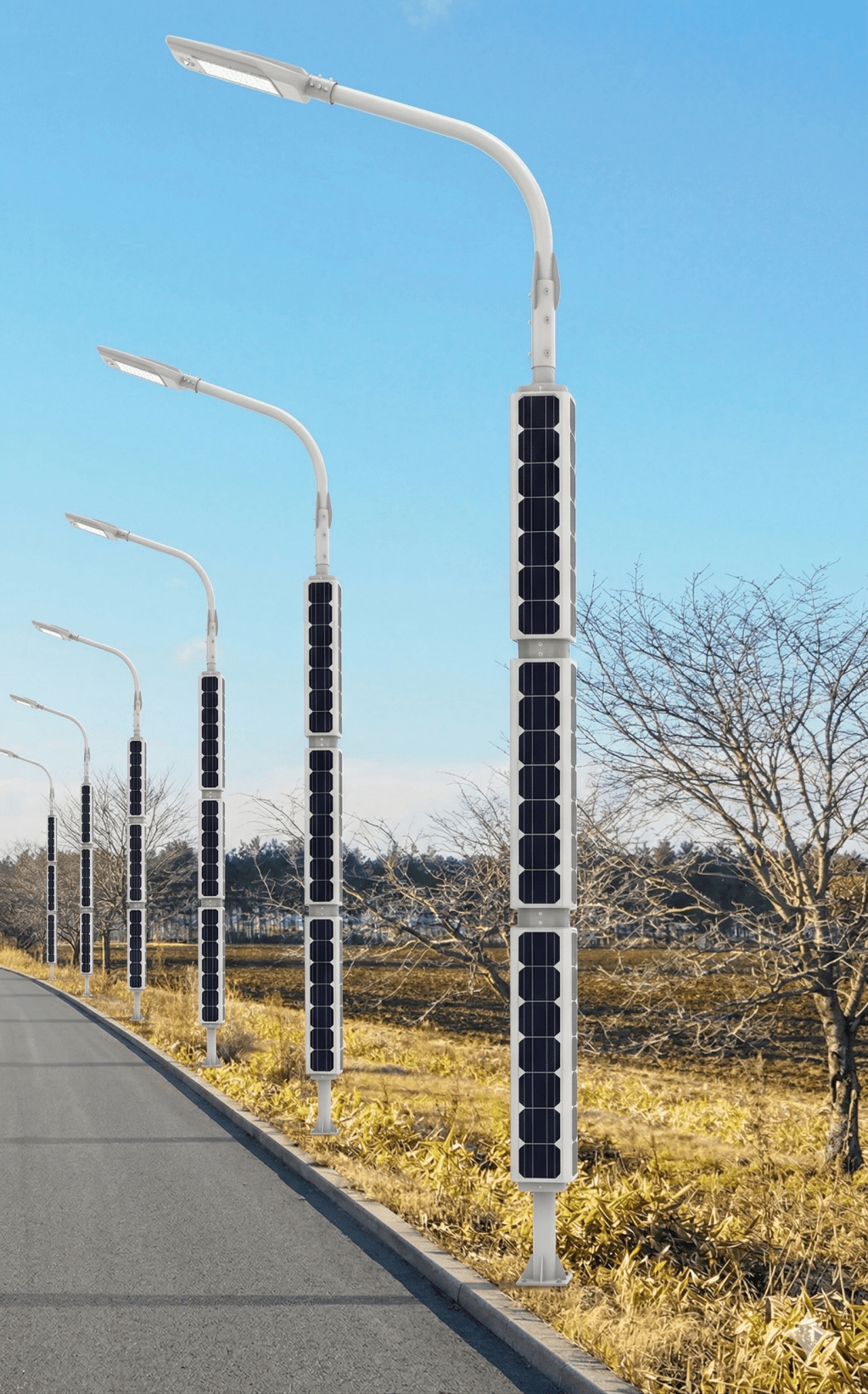 There is a product category in the solar street lighting market that looks like the future. Sleek cylindrical poles wrapped in solar cells, no flat panels sticking out at odd angles, no separate mounting hardware, just a clean integrated column of glass and metal that catches light from every direction. The renders are beautiful. The sales language is confident. But the physics of this design tells a different story entirely.